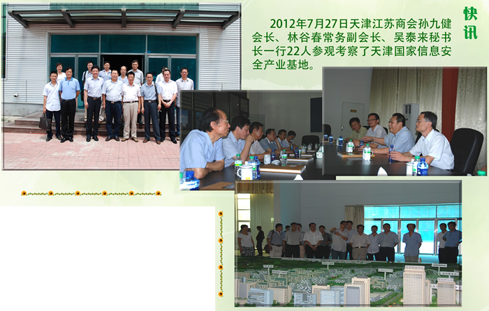 黨支部書記林谷春陪同天津江蘇商會會長等一行10人考察天津國家信息安全生產基地