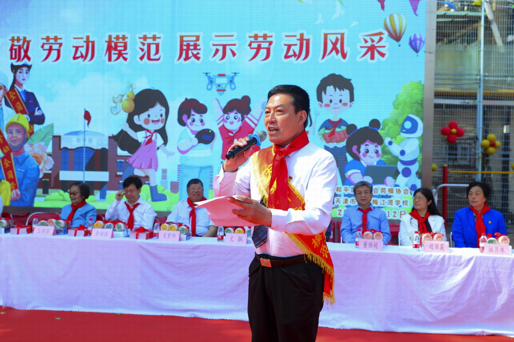 五月的陽光溫暖和煦,這是祝福勞動節日;五月的鮮花絢爛奪目,這是贊美最美勞動者。在這充滿喜悅、熱情洋溢的季節里,5月12日上午逸陽梅江灣的師生們齊聚勞動風采展示園,用行動致敬勞動模范,與榜樣一起展示勞動風采。應邀出席活動的領導和嘉賓有:和平區人大副主任、和平區總工會主席李桂強,逸陽梅江灣學校理事長王希萍校長,和平區教育局副局長劉洋,和平區關工委常務副主任吳紫陽、副主任薛友宏,和平區勞模協會副會長文飆,和平區勞模協會副會長韓志永,和平區總工會辦公室主任武紹理,天津市教科院課程中心課程室主任趙松濤,天津市教科院基礎教育研究所研究員趙麗霞,和平區勞技中心校長董繼超,河西區非遺保護辦公室主任吳丹等。天津國商人集團董事長林谷春作為天津市勞動模范代表參加了本次活動。