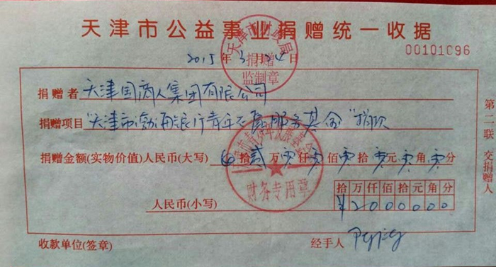 天津國商人集團在“翰墨情——讓愛溫暖心靈。青春陽光助殘”2015年天津市書畫家扶貧助困活動中,積極捐助,奉獻愛心。
